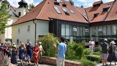 Uvidíte Bylinkovou zahradu Josefa Kamela s oranžerií, více jak staletý park s růžovým loubím a naučnou stezkou. Prohlédnete si i exteriéry bývalé jezuitské rezidence (Dům sv. Josefa) a bývalého pivovaru (Dům sv. Damiána). Nezapomeňte se stavit v Café Damián na náměstí.