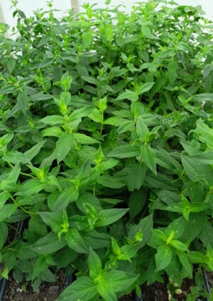 Stručný popis: vzpřímená keříkovitá trvalka, listy řapíkaté, u báze široké, tvar oválný, v polovině délky sbíhavé do špičky, po svrchní straně jemně ojíněné, vstřícné, křižmostojné