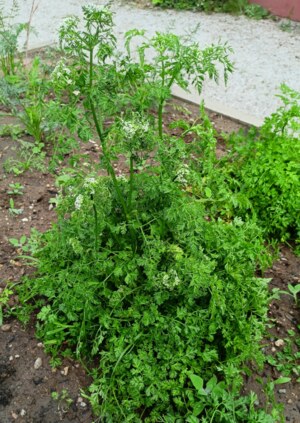 Stručný popis: tato nenápadná rostlina zaujme svými jemnými listy a vůni po anýzu, listy v přízemní růžici brzo přirozeně zasychají, čepel světle zelených lodyžních listů má trojúhelníkovitý tvar a jsou dělené (zpeřené)