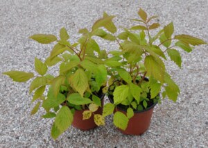 Stručný popis: keř s dvouletou obnovovací schopností, první rok výhony nevětvené, zelené, lysé, druhý rok s částečně se odlupující kůrou, listy zpeřené, na okraji jednou nebo dvakrát pilovité s řapíkem
