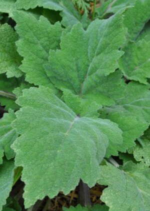 Stručný popis: statná trvalka s ochlupeným až plstnatým stonkem v horní polovině rozvětveným, listy vejčitě srdčité s vroubkovaným až zubatým okrajem a tupou špičkou tvoří jednak přízemní listovou růžici, ale nacházejí se i na stonku